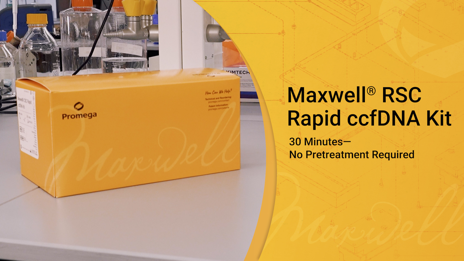 The Maxwell® RSC Rapid ccfDNA Kit, used with the Maxwell® Instruments, offers a simple and reliable automated solution for purifying circulating cell-free DNA (ccfDNA) from 1–4ml of plasma samples. The purified ccfDNA is of high quality and suitable for various downstream applications and assays. With a simple “load-and-go” workflow, the streamlined protocol of this kit requires no sample pretreatment or processing, eliminating the need to perform multiple laborious, time-consuming manual steps and accelerating the turnaround time to results. Combined with the reliability and efficiency of Maxwell® Instruments, users can go from plasma to purified high-quality ccfDNA in less than one hour.